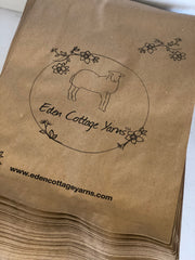 When I started ECY I was wrapping yarn in tissue paper to send it out, so that has developed into us getting our own countertop brown paper bags which are printed - I wrap the yarn in those, then they go in an envelope. Those countertop bags come with a minimum order of 10,000 though - this isn’t something that you could do early on in the life of a business, so it’s not terribly accessible as an option. I did it because wrapping yarn in tissue paper was just taking up so much time - it’s an extra minute of faff but when that’s per order and say I’ve got 100 orders to pack up in a day, well that’s more than an extra hour and half just for tissue paper. You get to the point where it’s more worthwhile to invest in the faster option. I love my brown paper bags - I know they’re not hugely glamorous but they fit in so well with our aesthetic and the latest batch of them are a bit sturdier than previously so that’s pleasing.