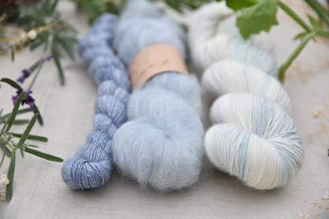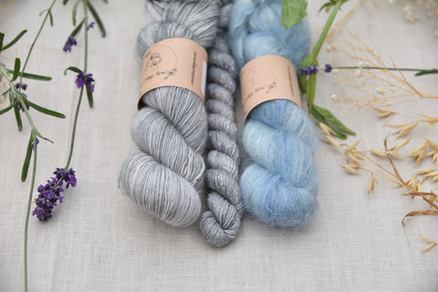 For each combination the colourways will be listed in the following order, Carlisle Fingering, Eldwick Lace, Nateby 4ply mini skein. We have a collection on the website which has all three of these yarns arranged in the same order which you can see HERE.