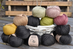 We have three aran weight yarns available on the website. Bowland Aran and Pendle Aran are interchangeable and work really well together. Both are pure superwash yarns with Pendle being merino and Bowland Aran being bluefaced leicester. Askham Aran is baby alpaca with silk and so is slightly finer but with a gorgeous softness.
