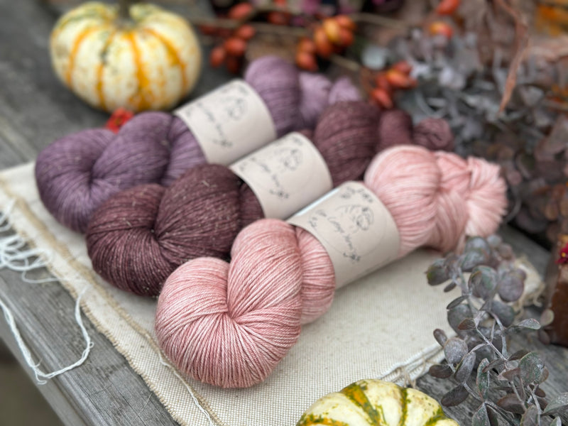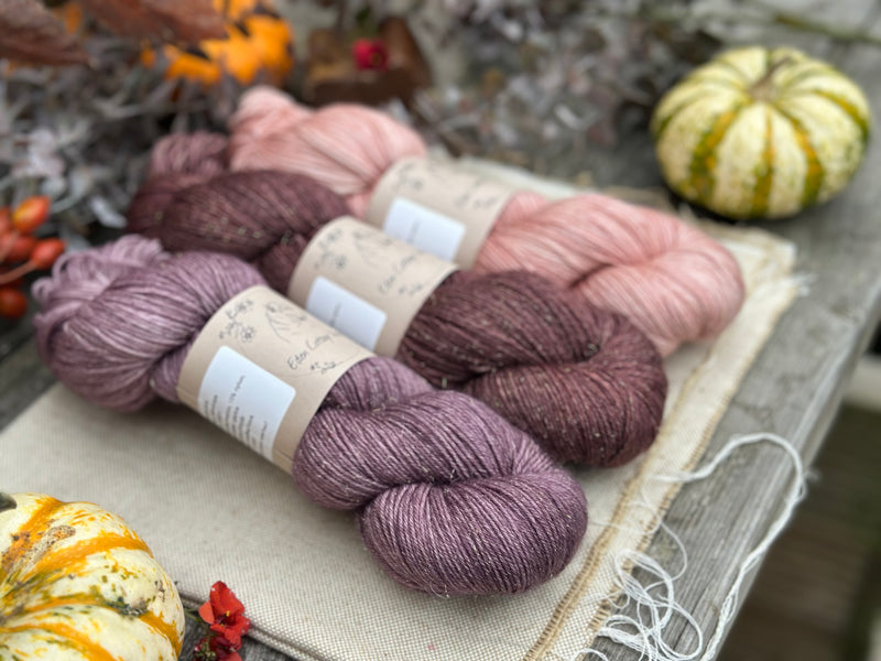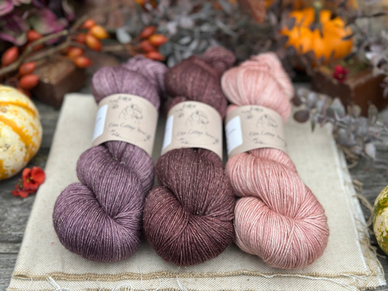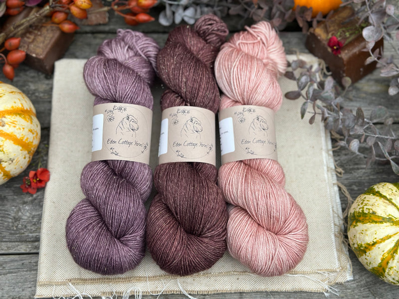 Three colour hand dyed Rosedale 4ply yarn pack - Dusky Pinks