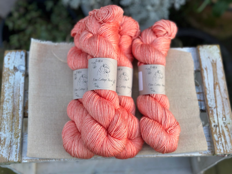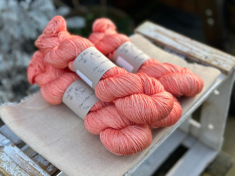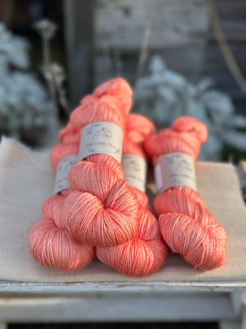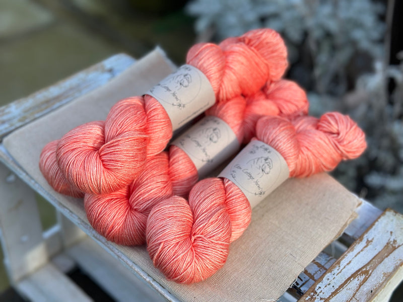 Hand dyed superwash merino and silk 4ply sock yarn in colourway Rosehip.