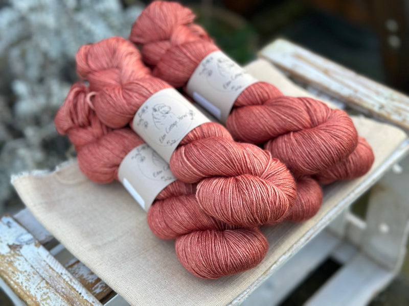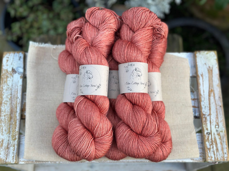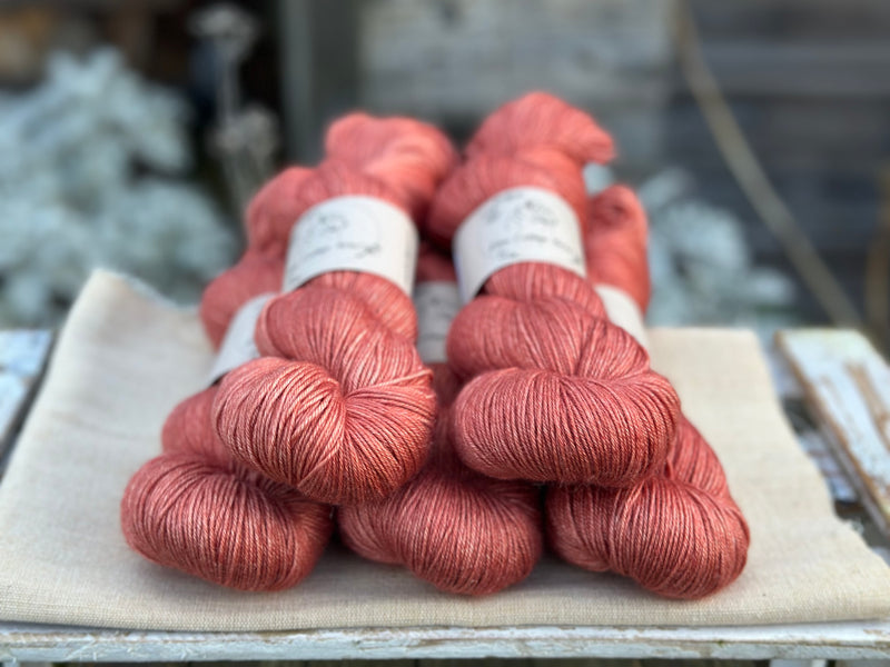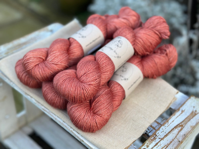 Hand dyed superwash merino and silk 4ply sock yarn in colourway Tomato.