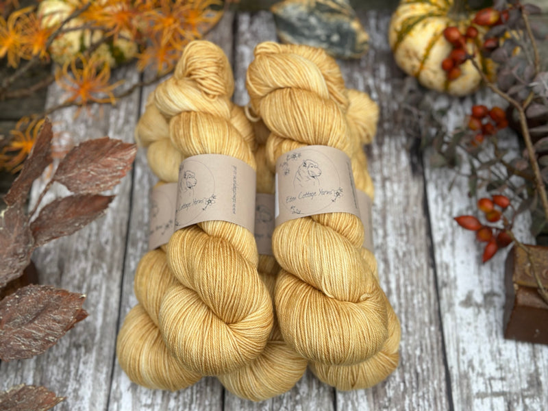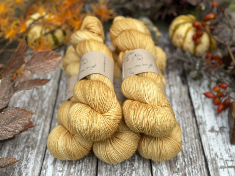 Hand dyed superwash merino with nylon 4ply sock yarn in colourway Sand - this is a soft, warm, shimmery sand-like hue.