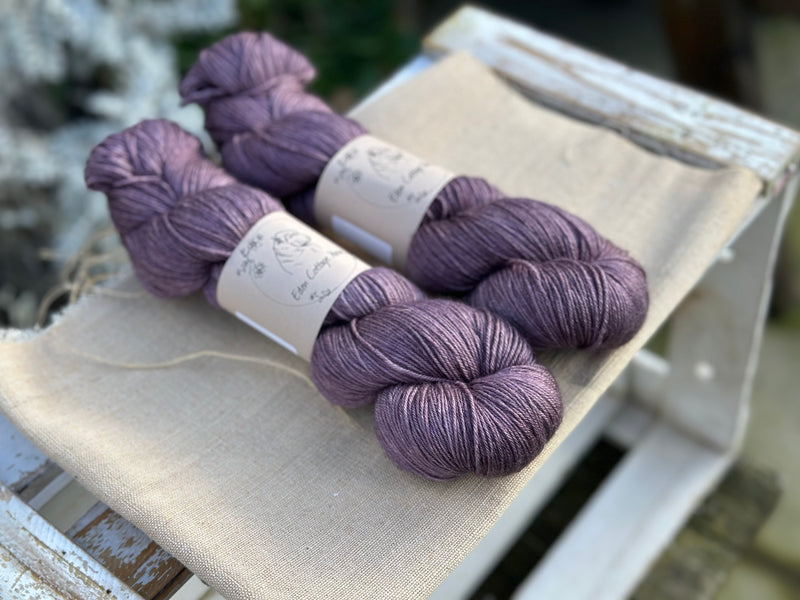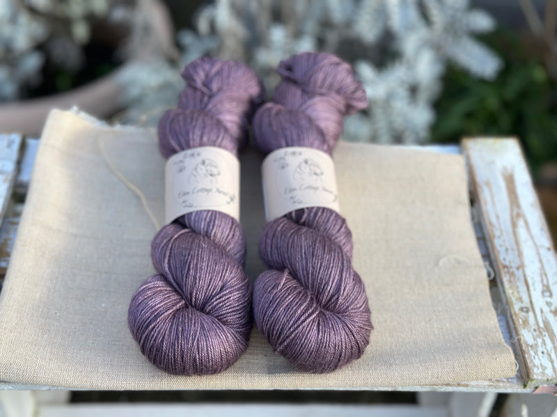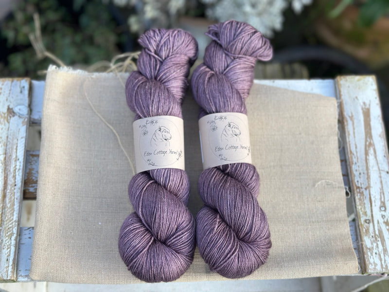 Hand dyed superwash merino and silk 4ply sock yarn in colourway Damson.