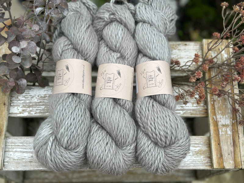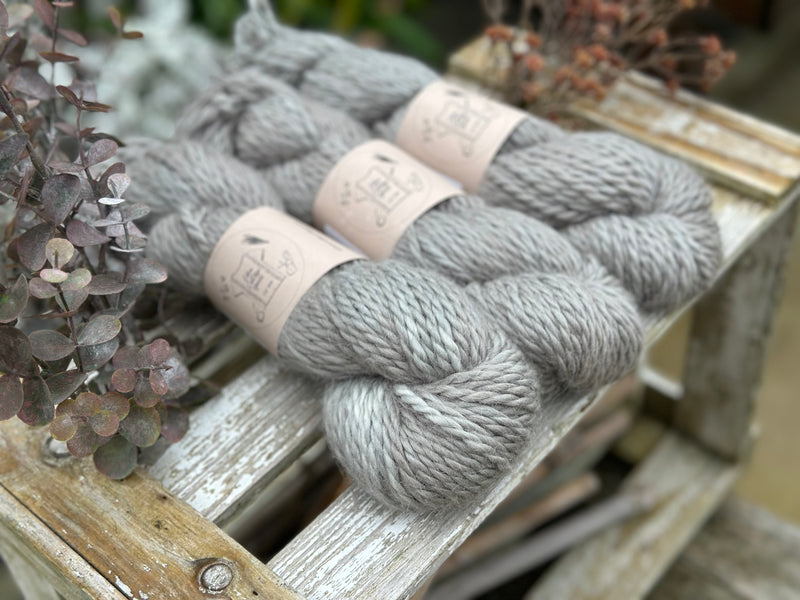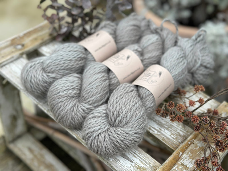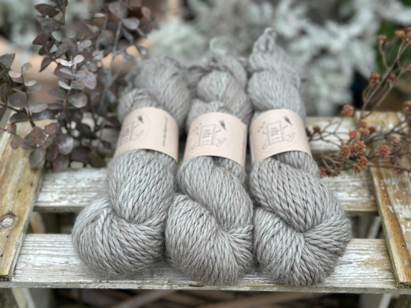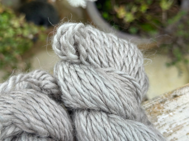 Hand dyed chunky baby alpaca in colourway Ash - this is a semi-solid grey, slightly darker than Steel but not as dark as Charcoal.