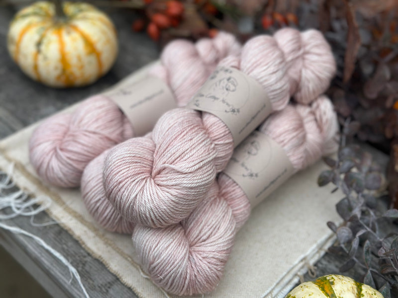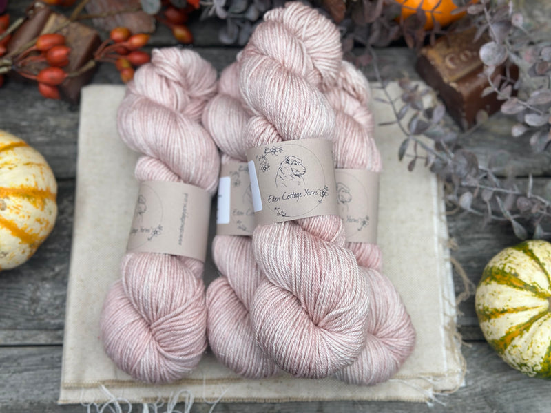 Hand dyed superwash merino, nylon and silver stellina DK yarn.