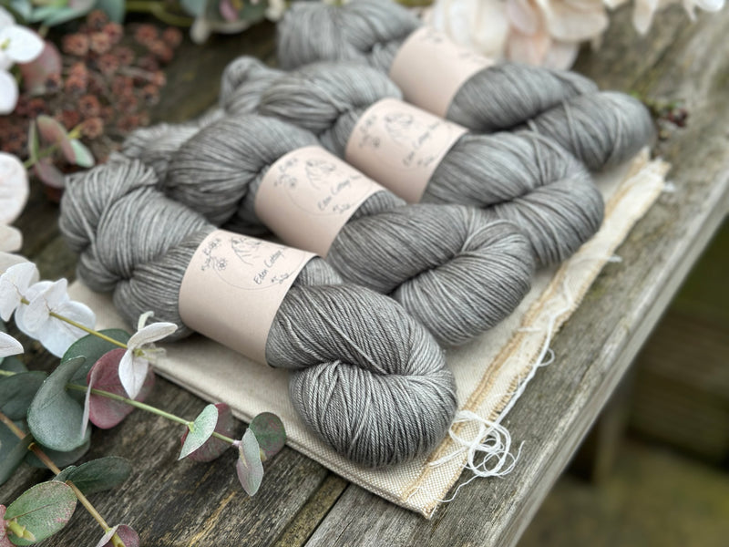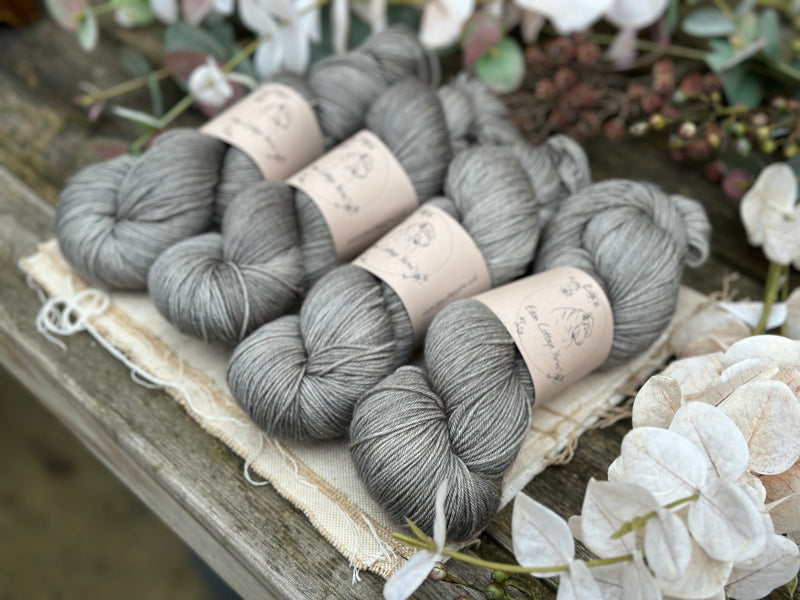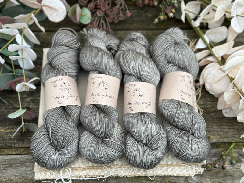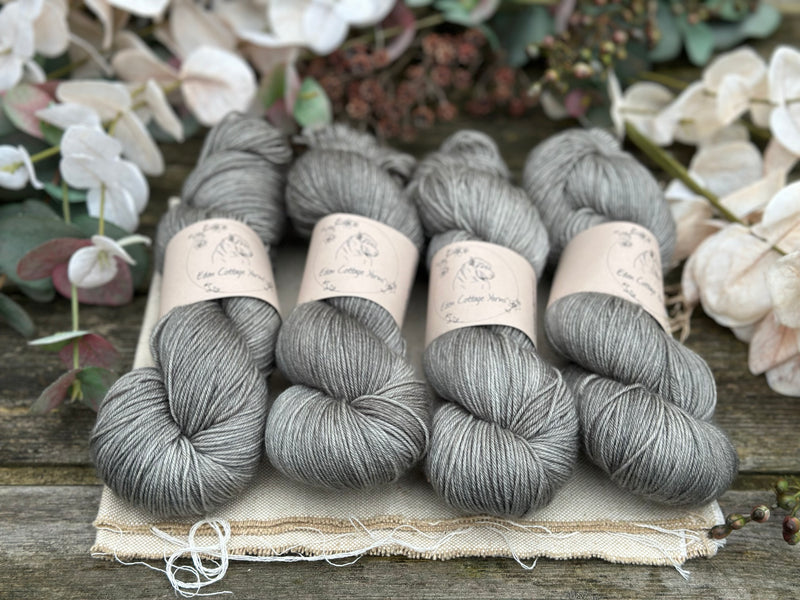 Hand dyed superwash merino with nylon 4ply sock yarn in colourway Ash.